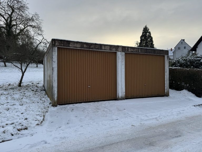 Gegenüber dem Wohnhaus befindet sich die großzügige Doppelgarage, die zusätzlichen Abstell‑ und Nutzraum bietet.