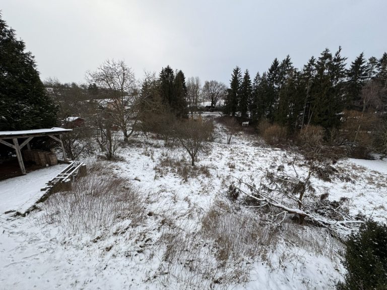 Hinter dem Wohnhaus liegen die zum Anwesen gehörenden landwirtschaftlichen Flächen, durch die ein kleiner Bach verläuft und dem Grundstück einen naturnahen Charakter verleiht